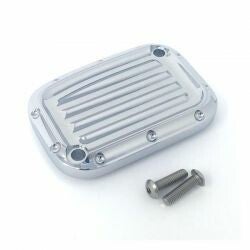 Front brake master cylinder cover in CNC machined billet aluminum with a chrome finish.